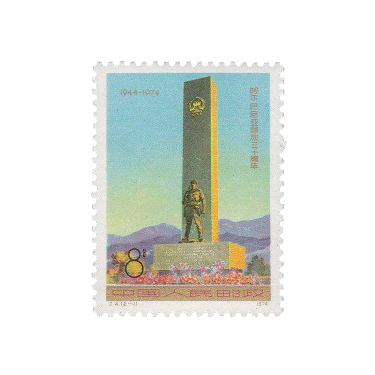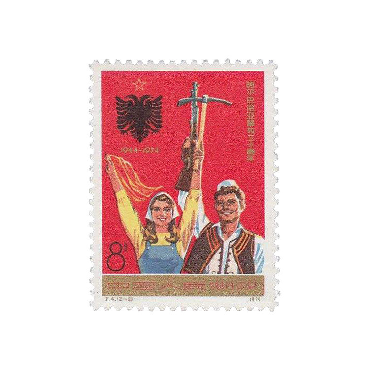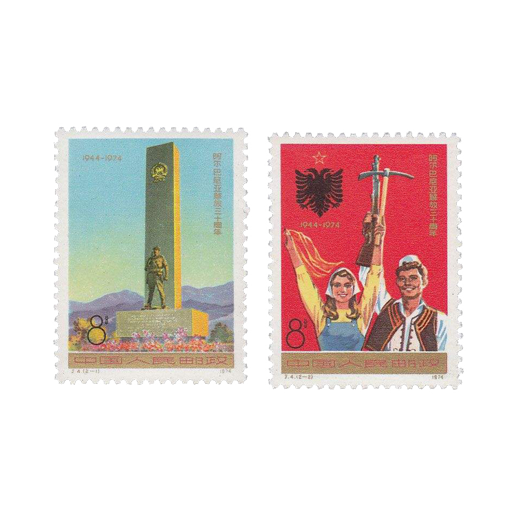 国家邮电部为纪念阿尔巴尼亚解放三十周年于1974年11月29日发行纪念邮票,1套2枚。