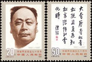 1991年第12届优秀纪念邮票《陈毅同...