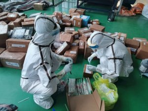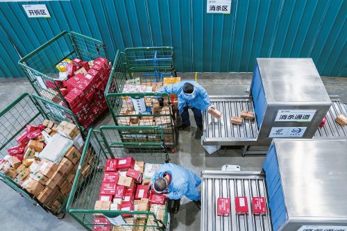 北京:媒体探访航邮中心 邮政严格防疫保邮件安全