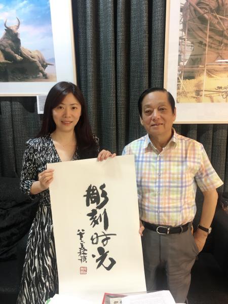 董琪:印象深刻的故事也很多,比如,采访韩美林先生。韩先生是当今艺术界的泰斗,他平时非常忙,惜时如金笔耕不辍,他与邮票结缘于小学时期,曾经收集过1万多枚邮票,后来在特殊的年代里蒙冤坐牢受尽非难也与邮票有点小关系,但他乐观坚毅,热爱艺术、热爱生活向往美好的阳光心态给我留下非常深刻的印象,而且韩先生对邮票的喜爱一直未曾改变。平反后,韩先生在1983年就设计了第一轮生肖邮票中《癸亥年》生肖猪邮票,极富装饰性,一头喜悦祝福的小猪,由当时咱们新中国第二代邮票雕刻家赵顺义老师雕刻,现在已经成为雕刻版邮票的精品。后来他又设计了多套精美的邮票深受大家喜爱。明年,2019年《己亥年》的生肖猪邮票是韩先生时隔36年再度出山设计小猪。而我正巧是《己亥年》生肖邮票“肥猪旺福”这枚邮票的雕刻者,我是咱们第三代邮票雕刻师,这是多么奇妙的缘分。一位艺术家,同一题材,两代雕刻师,跨越36年的雕刻时光。作为晚辈,更让我深受感动的是,韩先生欣然接受了我的采访并为本书题写了书名,当我去取这幅书法作品时,韩先生不但题写好并且还托裱好了。他这种对传统文化、对邮票的关爱,对晚辈的鼓励,折射出艺术家高尚的品格和大家风范。