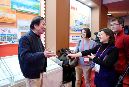 一说到邮票,两位老者的话匣子就打开了。“邮票作为‘国家名片’,意义非常重大,但设计难度也大,一般来说,艺术家喜欢挥洒,喜欢在创作中发挥自己的想象力,但恰恰邮票设计具有严谨的科学性。”许仁龙介绍,在《长城》邮票中,地理方位一点都不能马虎,长城的敌楼上有几个射箭孔都要有出处、有讲究;此外,邮票设计还要进行严谨的历史考证,长城绵延一万多公里,经过那么多省、市,沿途取景就需要仔细推敲,听取专家意见,最终还要画成一个艺术作品。“在设计邮票时要充分体现艺术巧妙的融合性,要突破时空,令人有身临其境之感,这又是一个难点。”时隔两年,许仁龙回忆起邮票创作过程还是感受颇多,“长城是改革开放的一种精神象征,中国邮政将它绘制成邮票长卷是一种突破。现在,这套邮票长卷在‘伟大的变革’展览中展出,我深感荣耀和自豪,在此也要感谢改革开放给我们艺术创作带来的新气象。”