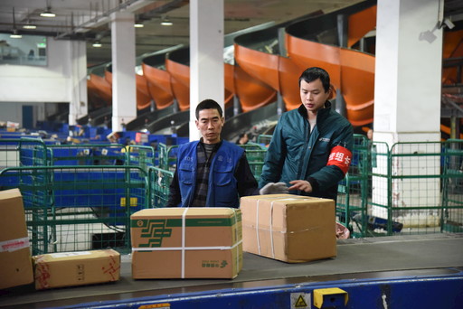 1月23日,双流邮件处理中心作业现场有条不紊运行着,员工们小心翼翼分拣处理包裹。