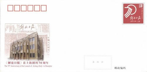 《<解放日报>在上海创刊70周年》纪念邮资信封今日发行
