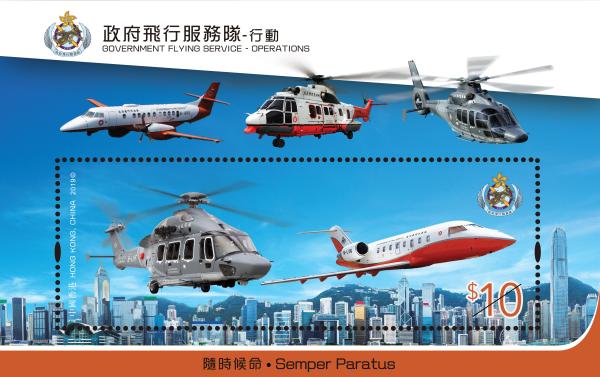 此套邮票由设计师李英志设计,6枚邮票描绘展示了主要行动服务,同系列的邮票小型张则介绍其机队的多款机种,让大众对香港政府飞行服务队有更深入的认识。