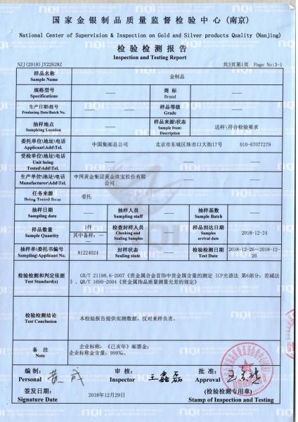 >首页>集邮信息>产品证书(历史)>《己亥年》邮票金质检报告