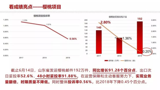 山东邮政在重汽物流市场、莘县香瓜市场、网点综合服务、跨境电商产业园融合发展、海尔物流源头获客、大樱桃项目运作等方面亮点突出,取得了不俗的成绩。