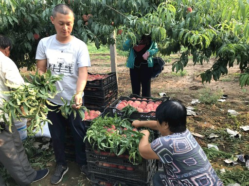 眼看着刚摘下的熟透的桃子,老乡们的脸上挂满了笑容。《中国航天报》记者 刘岩  摄