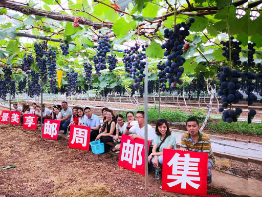 四川省资阳市雁江区邮政分公司结合乡村旅游开展“葡萄采摘+集邮周”活动。赖小洪 摄影报道