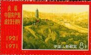 编14,8分,图案为“井冈山”。1927年10月,毛泽东率领秋收起义部队来到井冈山,创立了第一个农村革命根据地。1928年4月底,朱德、陈毅率领南昌起义保存下来的队伍和湘南农民军来到井冈山,和毛泽东领导的队伍会师,成立了中国工农红军第四军。井冈山的斗争开辟了一条以农村包围城市,最后夺取城市的道路。毛泽东当年曾预言“星星之火,可以燎原”。