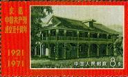 编12,4分,图案为“中国共产党第一次全国代表大会会址(上海)”。1921年7月,在上海卢湾区兴业路76号(原望志路106号),各地共产党早期组织推派李达、毛泽东、董必武、何叔衡等人代表全国50多名党员在此举行中国共产党第一次全国代表大会,宣告中国共产党成立。票面为经修缮复原的会址。