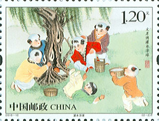 中国邮政定于2010年6月1日发行《文彦博灌水浮球》特种邮票1套2枚,小本票1本。
