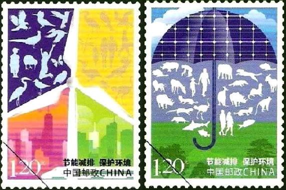 中国邮政2010年6月5日发行《节能减排 保护环境》特种邮票1套2枚。