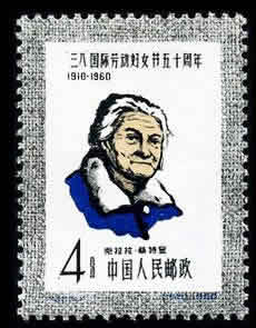 第一枚“三八国际劳动妇女节创始人克拉拉·蔡特金像”,是国际社会主义妇女运动的著名领导人蔡特金的画像。