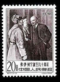 (262) 4分 列宁在演讲 600万枚 (263) 8分 列宁像 800万枚 (264)20分 列宁在斯摩尔尼宫和红色近卫军谈话 200万枚 1960.4.22。背面刷胶。P11.5×11。26mm×35.5mm。50(10×5)。(262)(264)雕刻版。(263)影雕套印。[A](264)瓦西里耶夫(苏)。[D]卢天骄。[E]孙鸿年、孔绍惠、唐霖坤。北京邮票厂。