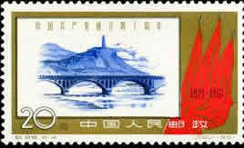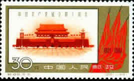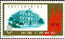 (287) 4分 第一次党代会会址(上海) 500万枚 (288) 8分 南昌“八一”大楼 800万枚 (289)10分 中央大礼堂(瑞金) 400万枚 (290)20分 延安宝塔山 300万枚 (291)30分 北京天安门 150万枚 1961.7.1。影写版。P11.5。52mm×31mm。50(5×10)。[G]。孙传哲。北京邮票厂。