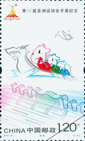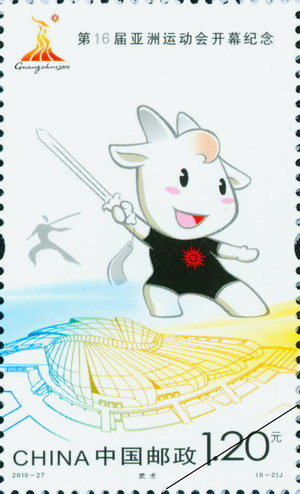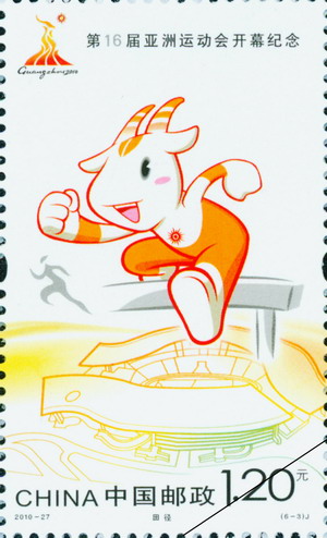 中国邮政2010年11月12日发行《第16届亚洲运动会开幕纪念》纪念邮票1套6枚。