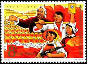 我国国民经济建设的第三个五年计划(1966—1970年)是在文化大革命的动乱中进行的。这是在文革初期国民经济一片混乱的形势下发行的一套邮票,2幅画面均带有文革期间“抓革命,促生产”的时代烙印。