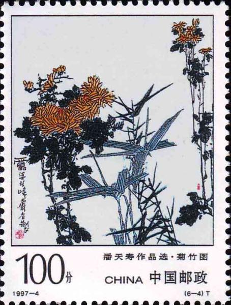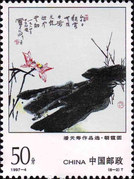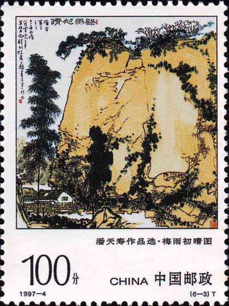 国家邮政局1997年3月14日发行《潘天寿作品选》特种邮票1套6枚。