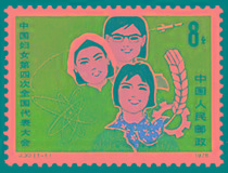 本套邮票1枚,为“中国妇女”。画面主图为妇女代表的形象,前面的代表工人,中间头戴白毛巾的代表农民,上面戴眼镜的代表知识分子。