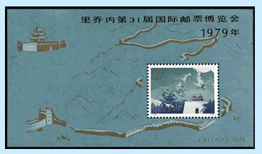 里乔内位于意大利西北部亚得里亚海滨,是一个风景优美的游览和避暑胜地。每年夏季常有大批游人从世界各地来这里避暑。为了满足各国观光者的集邮爱好,每年8月底至9月初,在这里的市中心旅游大厦都要举办国际邮票博览会,每次均有几十个国家和地区参加。里乔内国际邮票博览会的组织委员会同中国保持着十分友好的关系。早在1964年,该博览会组织委员会就邀请中国邮票总公司派代表团携带展品前往参加。这是为参加1979年里乔内国际邮票博览会而发行的纪念小型张。