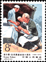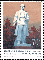 本套邮票共2枚。2-1为“诺尔曼·白求恩像”。2-2为“鞠躬尽瘁”。