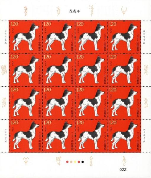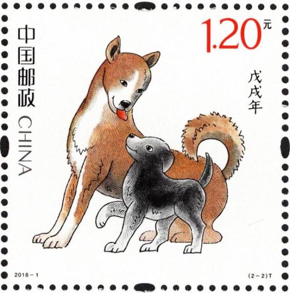 中国邮政2018年1月5日发行《戊戌年》特种邮票1套2枚,小本票1本。
