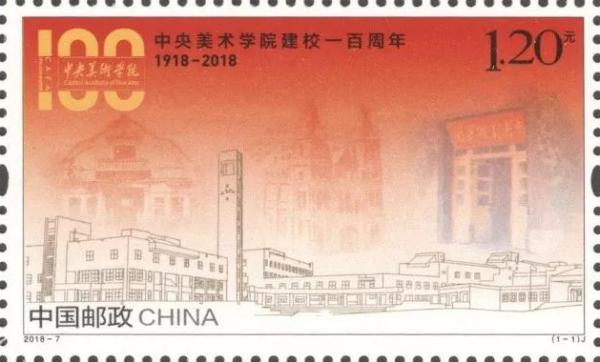 中国邮政2018年4月1日发行《中央美术学院建校一百周年》纪念邮票1套1枚。