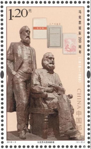 中国邮政2018年5月5日发行《马克思诞辰200周年》纪念邮票1套2枚。