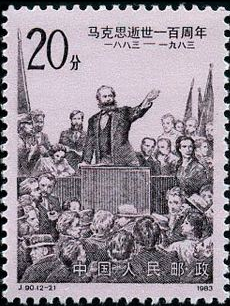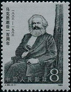 马克思(1818—1883)德国革命家,社会学家和经济学家,马克思主义的创始人。出生于普鲁士莱茵省特里尔城一个律师的家庭。17岁中学毕业后进入波恩大学和柏林大学,1841年考取耶纳大学的哲学博士。翌年到科隆,任《莱茵报》主编;1844年初创办了《德法年鉴》杂志,同年9月初和恩格斯在巴黎相识,从此两人毕生合作。他们一起参加巴黎各革命团体的活动,并著述了《神圣的家族》等书,阐述了辩证唯物主义和历史唯物主义的基本原理。1847年底和1848年初,马克思和恩格斯受共产主义者同盟第二次代表大会的委托,写了著名的《共产党宣言》,这是科学共产主义的第一个纲领性文献。1848年3月,德国发生革命,马克思移居科隆。在那里,他创办了《新莱茵报》,并担任主编。1850年至1851年,他先后写了《一八四八年至一八五零年的法兰西阶级斗争》和《路易·波拿巴的雾月十八日》两书,发展了历史唯物主义一系列重要原理;1867年出版了巨著《资本论》第一卷;1864年第一国际创立后,他成为第一国际的领袖。他对巴黎公社的成立表示坚决的支持,并同巴枯宁、拉萨尔等人为代表的机会主义进行了长期的论战。1883年3月14日,因病在伦敦逝世。为纪念马克思诞生135周年,我国发行了这套邮票。
