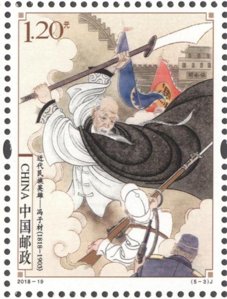 中国邮政2018年7月29日发行《近代民族英雄》纪念邮票1套5枚。