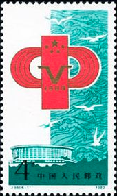 第五届全运会于1983年9月16日至10月1日在上海举行。比赛项目有足球、篮球、排球、田径、体操、水球等25项。参加单位有各省市、自治区、中国人民解放军及火车头体协等32个代表团。为纪念这届运动会的成功召开,邮电部特发行这套纪念邮票。