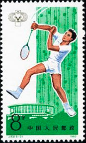 6-3为“羽毛球”。这是第一次将羽毛球选入整套综合运动纪念邮票之中,在绿色的背景上,一位男选手正挥拍击球。