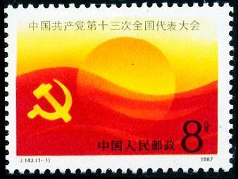 本套邮票共1枚,为“中国共产党第十三次全国代表大会”。这套邮票画面是中国共产党党旗和东方的旭日。
