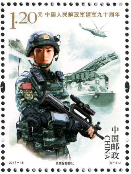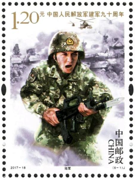 中国邮政8月1日发行《中国人民解放军建军九十周年》纪念邮票1套6枚,小型张1枚。