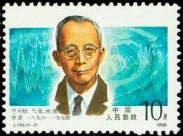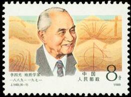 4-1为“地质学家李四光”。 4-2为“气象地理学家竺可桢”。 4-3为“物理学家吴有训”。 4-4为“数学家华罗庚”。 1988.4.28。影写版。P11*11.5。 40mm*30mm。 50(5*10)。 [G]。 邹建军。北京邮票厂。