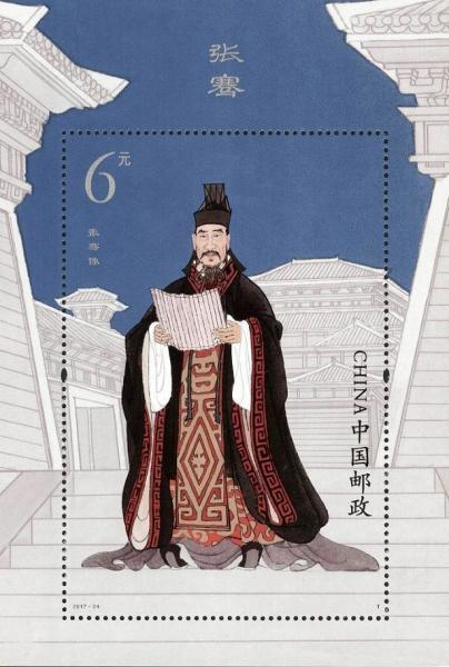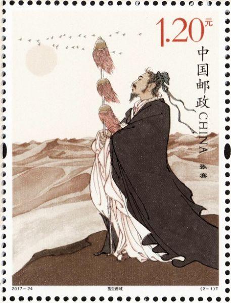 中国邮政2017年9月20日发行《张骞》特种邮票1套2枚,小型张1枚。