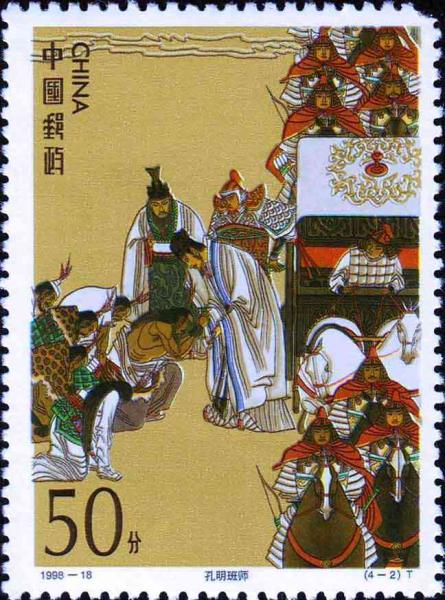 国家邮政局1998年8月15日发行中国古典文学名著《三国演义》(第五组)特种邮票1套4枚,小型张1枚。