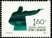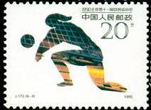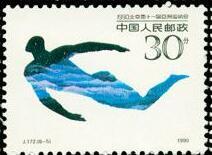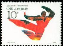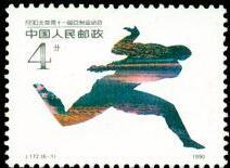 本套邮票画面分别为“田径运动”、 “体操”、“武术”、“排球”、“游泳”和“射击”。 1990.9.22。影写版。P11*11.5。 40mm*30mm。50(10*5)。 [G]。 卢德辉、刘波。北京邮票厂。
