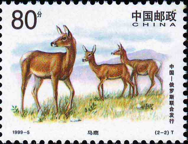国家邮政局1999年5月18日发行《马鹿》特种邮票1套6枚。(中国与俄罗斯联合发行)