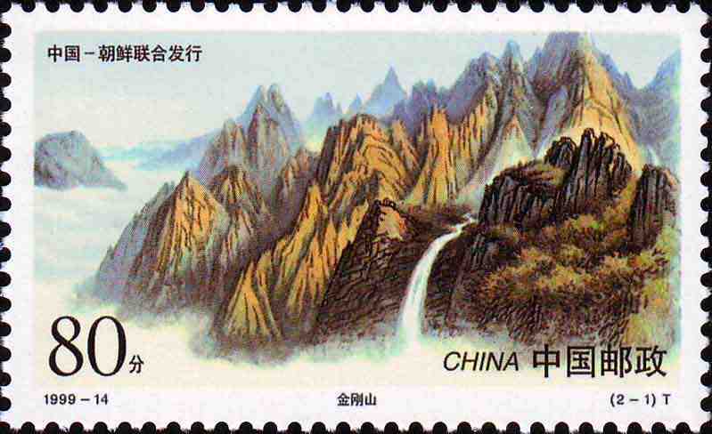 国家邮政局1999年10月5日发行《庐山和金刚山》特种邮票1套2枚。(与朝鲜联合发行)