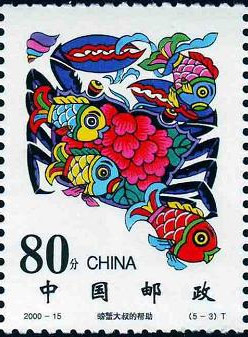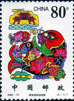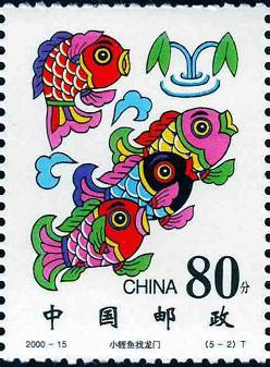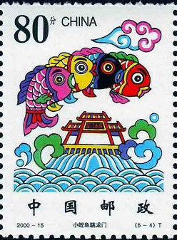 国家邮政局2000年8月8日发行《小鲤鱼跳龙门》特种邮票1套5枚。
