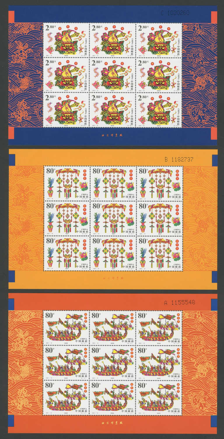 国家邮政局2001年6月25日发行《端午节》特种邮票1套3枚。