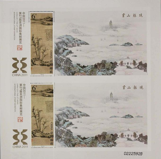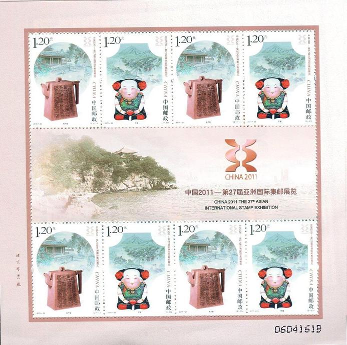 注:为配合中国2011—第27届亚洲国际集邮展览活动,另印制《中国2011—第27届亚洲国际集邮展览》无齿小型张1枚(双联无齿小型张)。