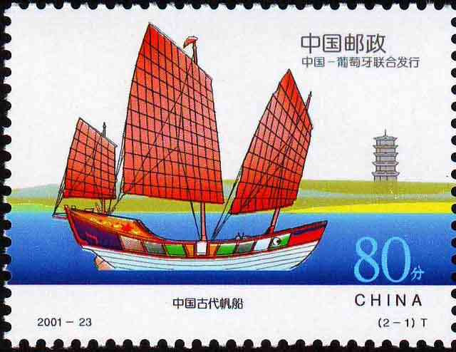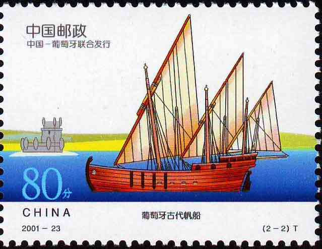 国家邮政局2001年11月8日发行《古代帆船》特种邮票1套2枚。(与葡萄牙联合发行)