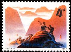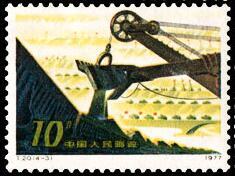 (1) 4分 群众报矿 1000万枚 (2) 8分 掘进尖兵 1000万枚 (3)10分 露天采矿 1000万枚 (4)20分 井下运输 1000万枚 1978.12.29。影雕套印。P11×11.5。40mm×30mm。50(5×10)。[G]。[D]邵柏林。[E]高品璋、孙鸿年、李庆发、姜伟杰。北京邮票厂。