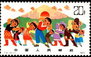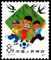(1)20分 从小锻炼为革命 1600万枚 (2) 8分 小小足球传友谊 1600万枚 (3) 8分 大风大浪不可怕 1600万枚 (4) 8分 体操表演庆丰收 1600万枚 (5) 8分 万里征途攀高峰 1600万枚 1978.6.1。影写版。P11.5。卢天骄。[G]。北京邮票厂。 (1)52mm×31mm、40(4×10) (2)-(5)26mm×31mm、80(8×10)