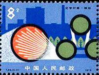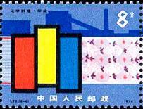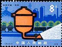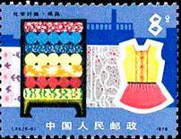 (1)8分 原料 1500万枚 (2)8分 抽丝 1500万枚 (3)8分 纺织 1500万枚 (4)8分 印染 1500万枚 (5)8分 成品 1500万枚 1978.6.15。影写版。P11×11.5。40mm×30mm。50(5×10)。5枚连印。[G]。吴建坤。北京邮票厂。