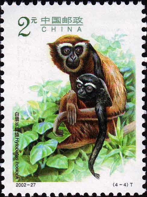 2002年特种邮票《长臂猿》国家邮政局2002年12月7日发行《长臂猿》特种邮票1套4枚。