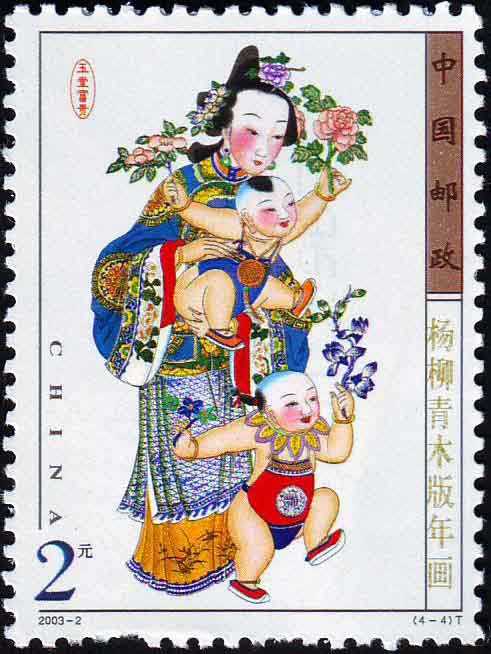 国家邮政局2003年1月25日发行《杨柳青木版年画》特种邮票1套4枚。