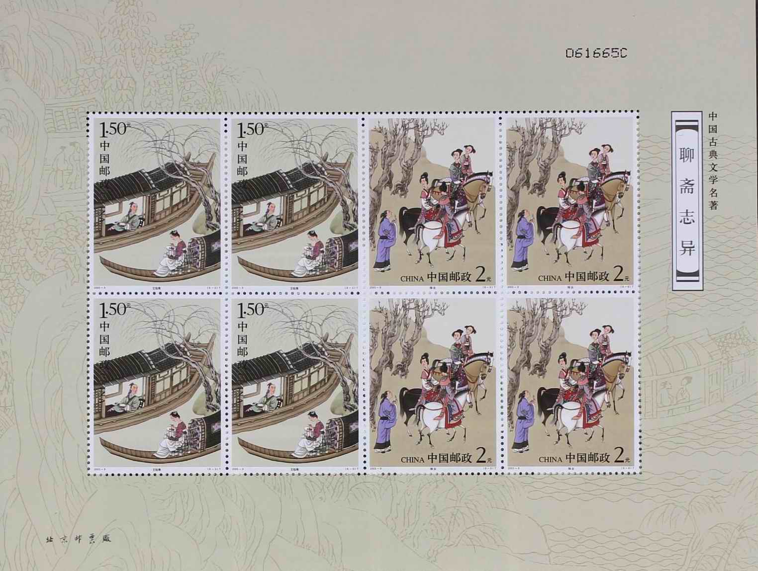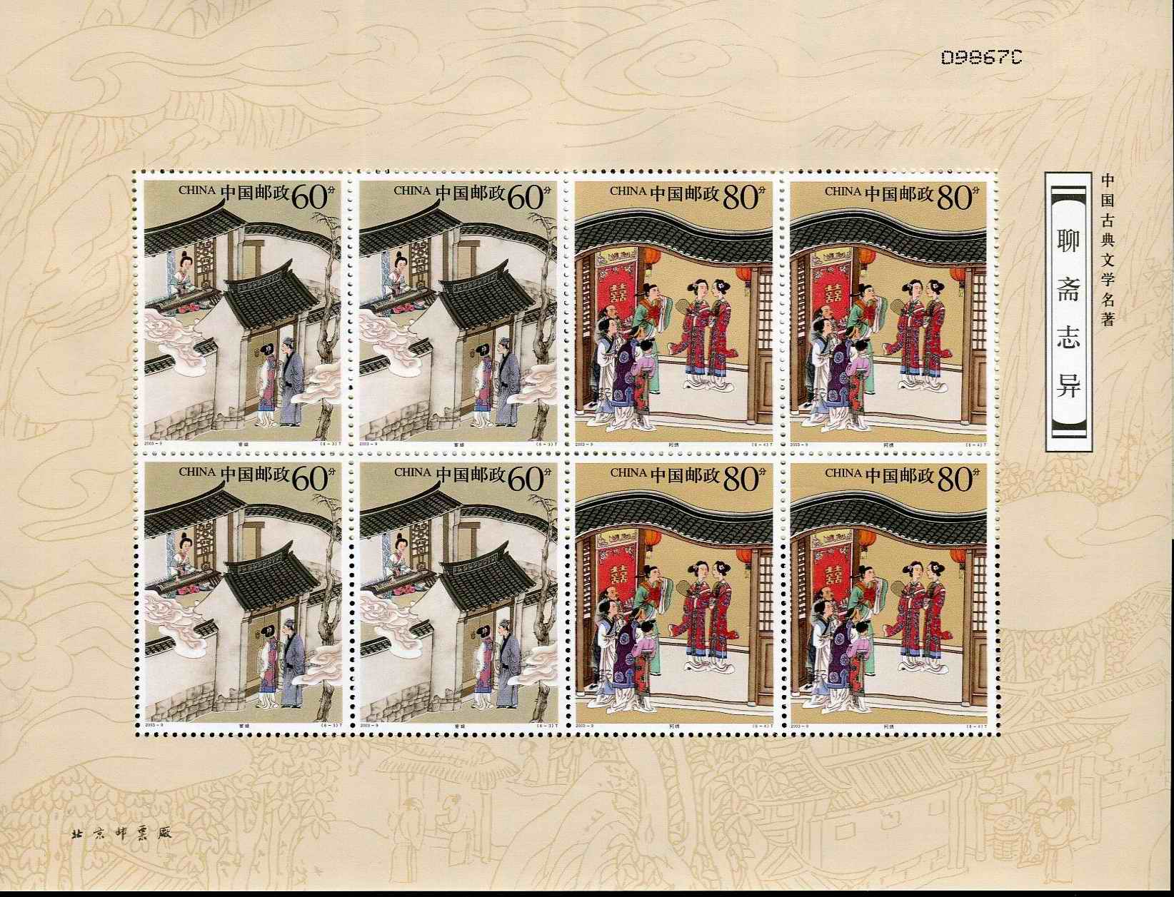 国家邮政局2003年5月16日发行《中国古典文学名著—聊斋志异(第三组)》特种邮票1套6枚,小型张1枚。